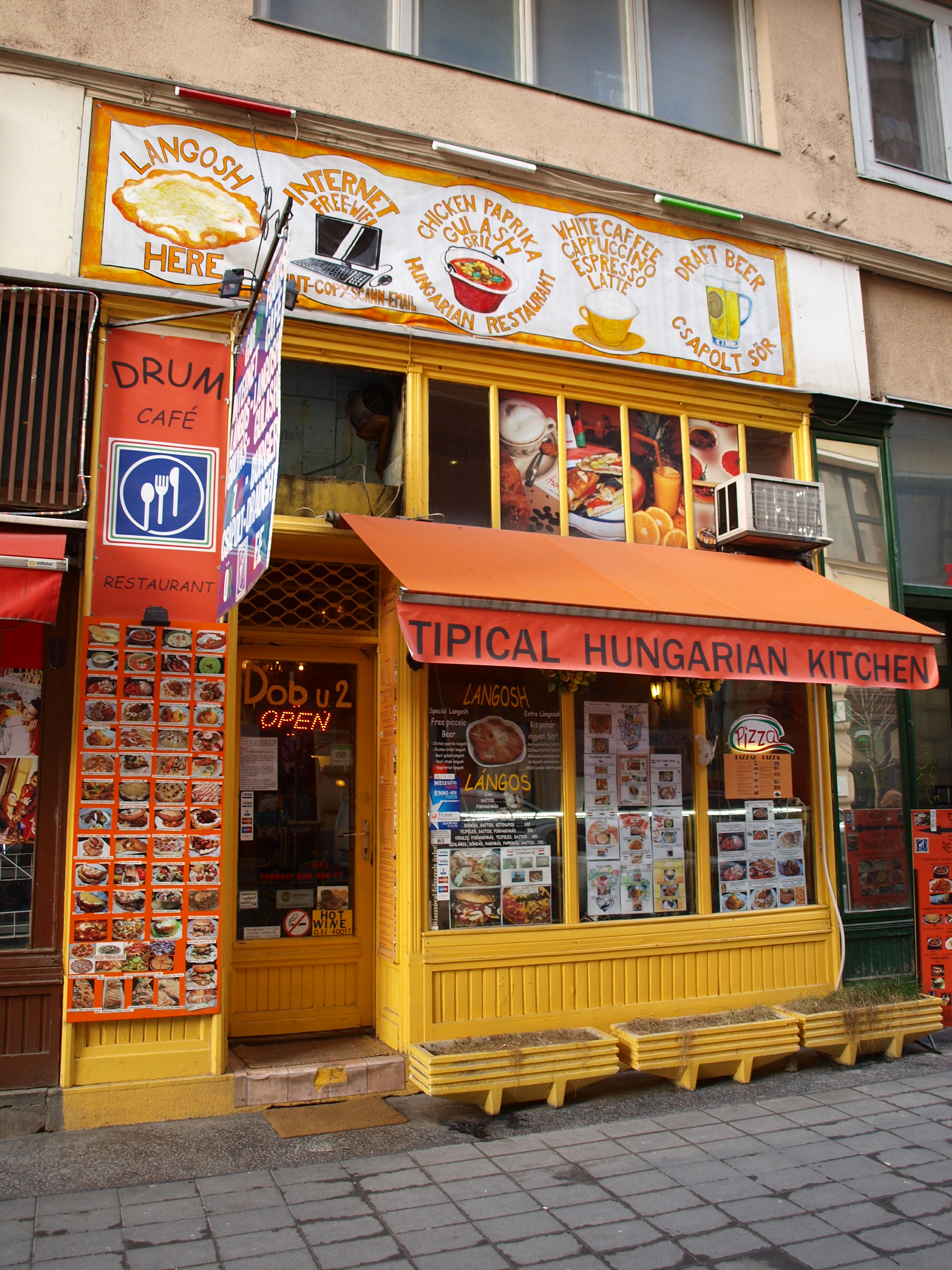 Aktualizace 2016: Můj zapadlý bar byl zjevně populárnější, než jsem myslela. Dnes je výrazně rozšířen, ověšen nezbytnými paprikami a kotlíky a přetéká turisty. Menu zůstalo téměř stejné, jen zmateného číšníka nahradili nabušení frajeři, kteří se ani nesnaží mluvit s vámi maďarsky. A jídlo už taky nebylo tak úžasné.