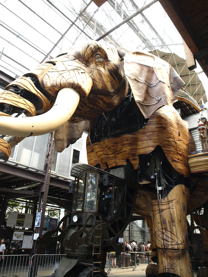 Z Nantes jsme neviděli skoro nic. Obětovali jsme objevování města za lenošení v kouzelné zahradě a slunečnicovém poli. Jediné, co jsme navštívili, než jsme nasedli na letadlo, byl Ostrov strojů ( Les Machines de l’île ). Na druhou stranu možná je to ale to nejlepší, co v tomto západofrancouzském městě vidět. Neskutečně steampunková záležitost, chodící obří slon a ještě větší carusel o třech poschodích – od hlubin moře až po jeho hladinu. Nikdy bych nečekala, že mě vození na kolotoči bude tak bavit, ale ty pohyblivé potvory byly prostě boží. I jen se na ně dívat a sledovat, co všechno se hýbe.