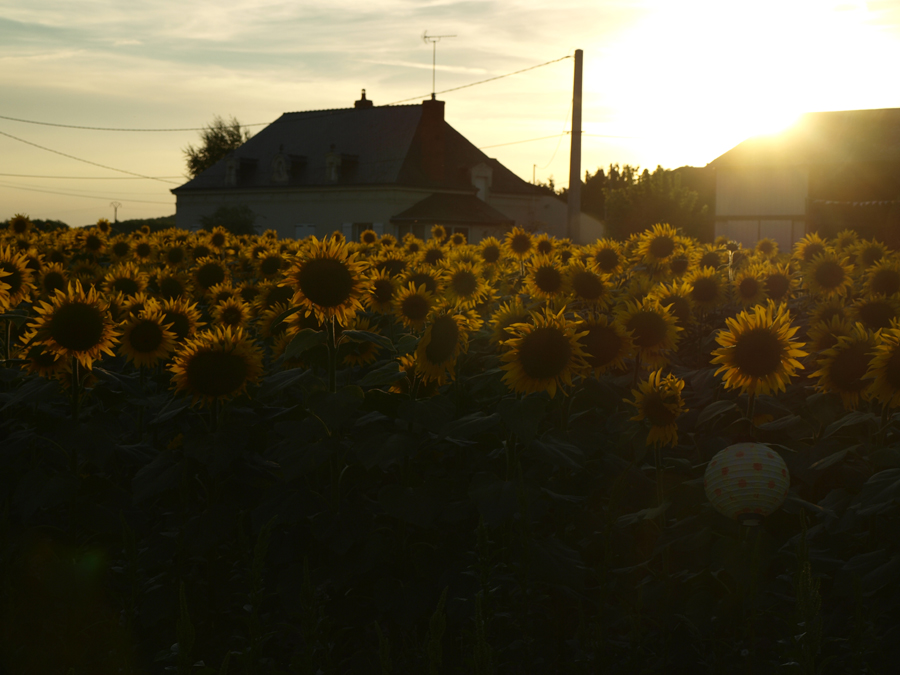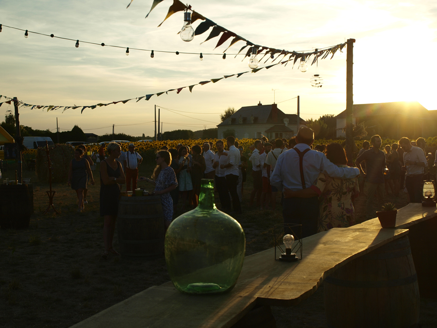 Celá cesta byla spojena s drobnými dramaty a dobrodružstvími – jako třeba vůbec najít místo svatby – v cíli byl jen dům uprostřed polí. Městečko jsme nechali za sebou. Naštěstí z pole vyčuhovaly májky ověšené barevnými fáborky a světly a celkem rychle nám došlo, že kdesi uprostřed vší té slunečnice se schovává místo slavnosti.