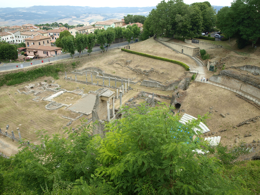 I Volterra mi přišla podivně malá. Pamatovala jsem si ji jako impozantní město na kopci a vlastně ani tak impozantní nebyla. Co hůř, pitomé Stmívání mi pokroutilo vzpomínky úplně a hlavní náměstí mě svou „velikostí“ vysloveně zklamalo. Na druhou stranu tady jsme zase nikdy dřív neviděli římské ruiny a nepamatuji si ani, že by před těmi patnácti lety, kdy jsem tam byla naposledy, všude hřezl alabastr.