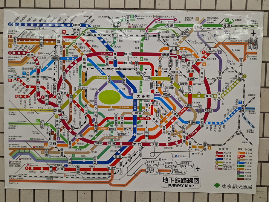Skvělé mi v něčem přišlo i metro. Ano, je to trochu chaos, protože po jedné koleji může jet několik různých společností, které ne všechny staví ve stejných stanicích a ne všechny stojí stejně. Nebo je to minimálně stejná stanice a než se zorientujete, co je fakt metro a co JR, které je dražší, může se to lehounce prodražit. Na druhou stranu ani tohle není zas takový problém, ve stanici je přístroj, kde si jízdenku „dobijete”, aby vás turnikety pustily ven. Fantastický mi ale na metru přišel systém značení. Jednak pomáhá orientaci stará dobrá barva. Pak má každá linka svoje jméno a svoje písmeno. Absolutně blbuvzdorné i pro nejaponce je značení jednotlivých stanici pomocí písmena a čísla (tedy naše oblíbená fialová Hanzomon line má stanice Z1-Z14, třeba). Většina nápisů v metru byla s anglickým překladem, ale ve chvíli, kdy vám ten jazyk není blízký, jednoduché písmeno, číslo a barva hodně pomáhá.
