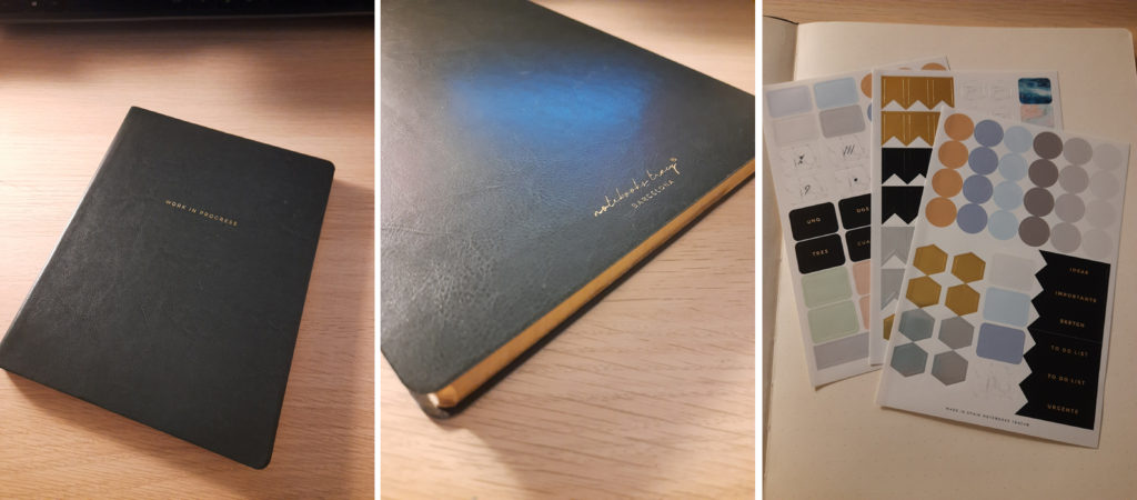 Ve fnacu jsem také našla poklad – zápisník, který budu mít příští rok místo Leuchtturmu na diář. Krásně elegantní černá vazba se zlatým okrajem tečkovaných stránek, ideální velikost B5, což je moje srdcová záležitost a se sadou samolepek. K mé radosti se navíc jedná přeci jen o místní úlovek, protože pochází z barcelonské Notebook Tracy . Má jisté nedokonalosti – tečky jsou 7 mm od sebe, což je zbytečně moc a chybí mi aspoň jedna záložka, ideálně dvě, ale to je řešitelné. Nechat jsem ho tam skutečně nemohla. (Edit 2023: Zápisník krásný, rok mi vydržel, ale poměrně rychle se mu odrbaly rohy a vlastně vypadal brzy dost ošuntěle.)