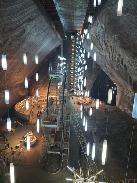 Ráno jsme si trochu zkomplikovali život snídaní, kterou ubytování nakonec i přes večerní slib nepodávalo (měla být v devět, ale nikde nikdo a hlavně nic!), takže jsme se pokusili nasnídat v Cluji, což nám nevyšlo. Radši jsme rovnou zamířili do Saliny Turdy na solný důl. tady si o ní můžete přecíst víc Impozantní, uznávám, ale po návštěvě solného dolu ve východním Rumunsku mi to tu přišlo jako u chudých příbuzných. Ani ztratit se tu nedalo! Zato jsem si vyšli pěkných pár schodů, protože fronty na výtah byly nekonečné. Taky nedoporučuju vydávat se dlouhou chodbou k druhému východu, že je to přeci jen přes parkoviště. Není. 500 metrů pod zemí je nějakých 7 km po povrchu. Takže hezky zase zpátky.