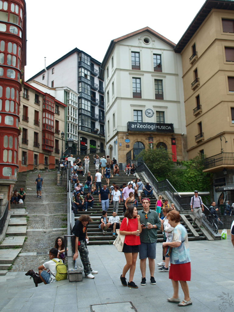 Oproti předchozímu dni ale tentokrát cesta utekla výrazně rychleji. Stejně jako minulého dne jsme nejprve zamířili k hotelu, abychom se ubytovali, případně osprchovali a teprve pak vyrazili do města. Hotel taktéž zapadal do kolonky „tady bych si to nikdy nevybrala, ale má to parkování“. Vypadal ještě o něco honosněji než ten předchozího dne. Rádoby okázalá omšelost dávala jasně najevo, že za ní jsou hodiny a hodiny pečivé designerské práce. Která se nejspíš promítla na ceně a ta se zase promítla na mém srdečním tlaku. Řekněme, že 90 € za noc v hotelu, kde se mi fakt nelíbí, mě málem položilo (navíc zde jsme měli strávit dvě noci, takže krát dva…). Navíc po příchodu na pokoj se ukázalo, že akorát probíhá rekonstrukce, takže nejen že za oknem jsme měli fascinující výhled na lešení, ale zvukový doprovod tvořil výmluvný zvuk vrtačky, zbíječky, nebo nějakého podobně hlučného nástroje. Trošičku jsem se z těch peněz skácela. Obrazně i doslovně, takže když Muž odcházel, nechával mě ležící na posteli s tichým skuhráním, že já to určitě rozdýchám. V jeho nepřítomnosti jsem si zaprskala s vlastní maminkou a našla všechny možné argumenty, jakože žijeme jen jednou, do Bilbaa už se asi nikdy nepodívám (a možná bych se asi jinak nepodívala), peníze budou, my nebudeme… Všechno jsem si to zopakovala. Když se Muž zase vrátil, už jsem byla docela provozuschopná a dokonce mě i pobavila jeho prosba, abych se o tom venku před rodiči nezmiňovala, protože na vedlejším pokoji probíhala úplně stejná diskuze, kdy tchyně nadávala, že je to moc peněz za hnusné místo. Chudák tchán, je to nevděčná pozice hledat ubytování.