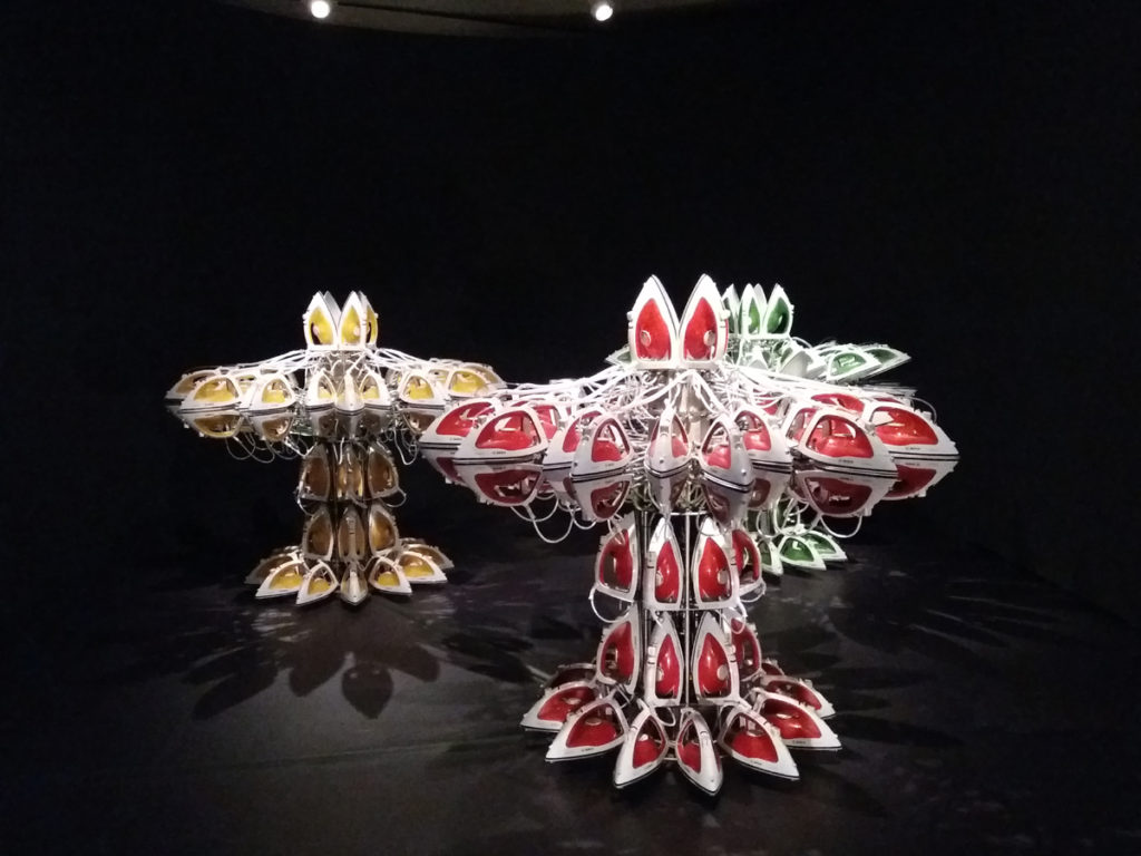 Co k tomu říct? Asi to splnilo mé očekávání – kdybych nešla, o nic jsem nepřišla. Moderní umění jako takové jde prostě mimo mě. Dokázala jsem ocenit prohlídku kutnohorského GASku, kde nás provedla kolegyně, která tomu dala šťávu a smysl. Ale tady jsme bezcílně bloudili a snažili se ten smysl celkem bezvýsledně najít. Dobře, když jsem se snažila, asi jsem viděla význam v díle v sekci „Španělská občanská válka“, pod názvem „Bez názvu“, kdy na mě ze stěny zíralo černé plátno. Nic víc, černě natřené plátno, jen v levém dolním rohu zůstal nedotažený bílý obdélníček. Asi symbolika. Ještě hlubší symbolika byla nejspíš skrytá ve videozáznamu, na němž se skupinka nahých čínských lidí skládala na sebe do rozplesklé pyramidy (lehali si na sebe, žádná závratná výška). Stáli jsme tam, koukali na to, a nechápali. Stejně jako sadu televizních obrazovek, přičemž na každé běžela smyčka záběru, v němž se někdo drbal. Na ruce, na noze, na krku, na trupu… jen záběr na drbající ruku. Ne, nejsem cílová skupina. Už proto, že největší zábavou pro nás nakonec bylo potkávání velmi zapálené obdivovatelky, která kroužila muzeem s očima navrch hlavy a zuřivě píšící do svého notýsku.