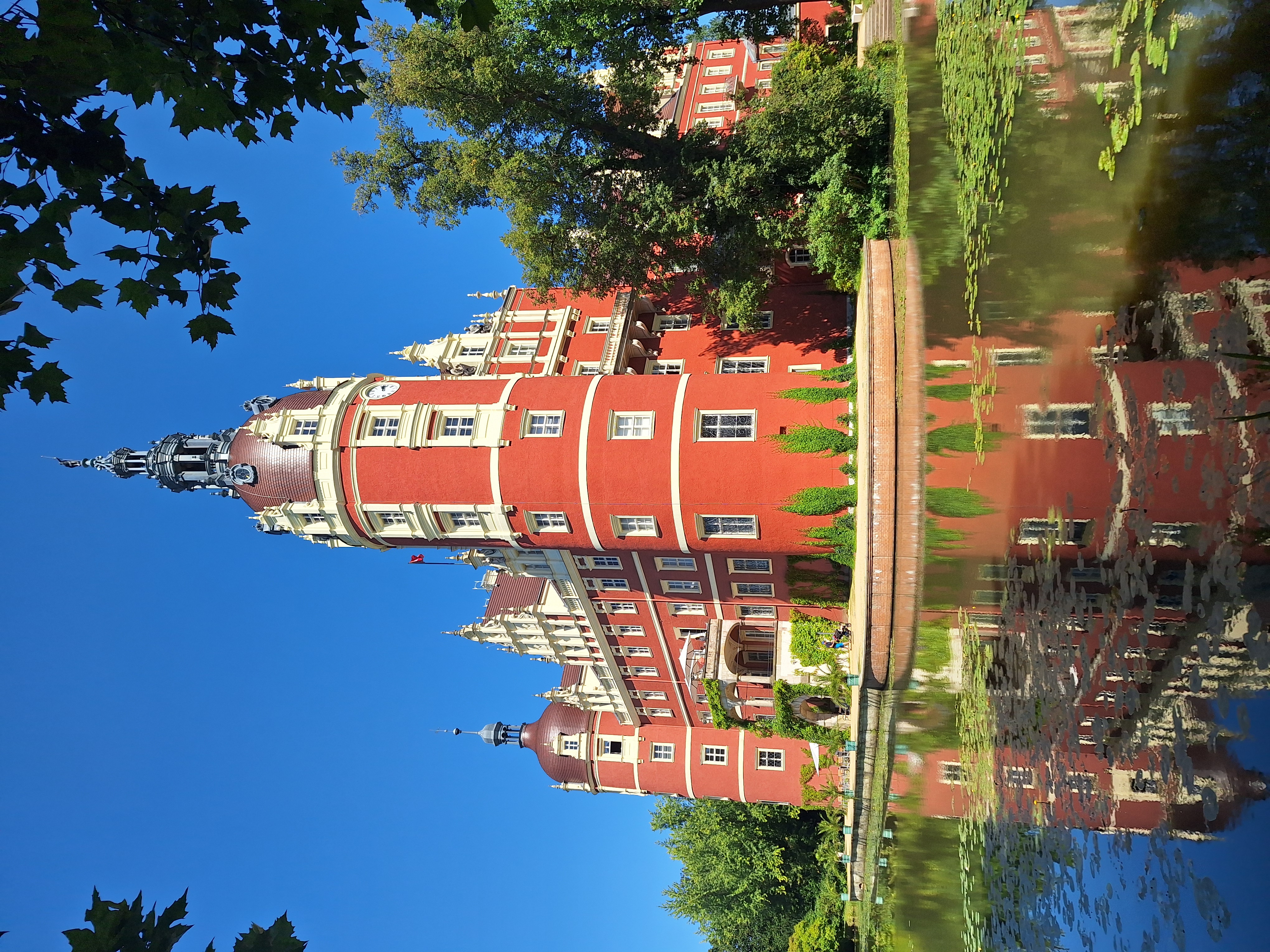 Než jsme se k druhému jezeru ale dostaly, udělaly jsme ještě zastávku v Bad Muskau, které z poloviny už leží v Polsku. Ukázkově mrtvé městečko, kde nenajdete ani toho chcíplého psa, ale zato tam mají zámek s parkem, který je zapsaný na seznamu UNESCO. A během procházky můžete trénovat Cimrmana v alternaci “jsem v Německu, a už jsem v Polsku”. Upřímně, zámek pěkný, parku jsme věnovaly dvacet minut, jinak nebylo co víc si tam počít a jezero v horkých poledních teplotách nás lákalo výrazně víc.